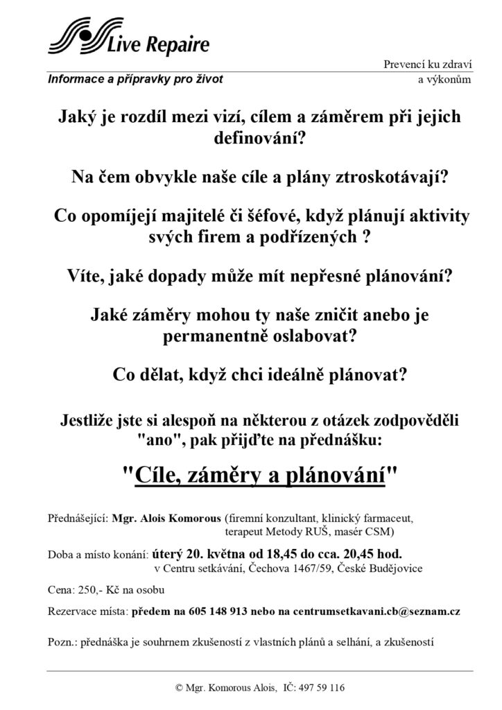 CÍLE, ZÁMĚRY a PLÁNOVÁNÍ