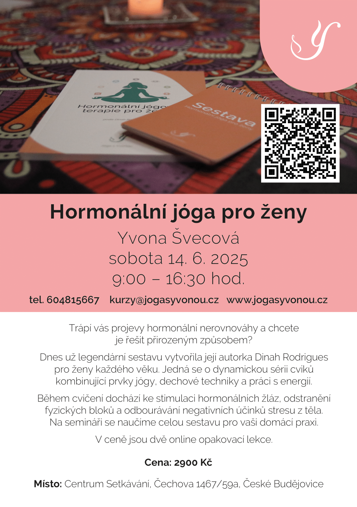 Trápí vás projevy hormonální nerovnováhy a chcete je řešit přirozeným způsobem? Hormonální jóga představuje cestu, jak navrátit Vašemu tělu optimální zdraví a podpořit tak sebeléčivou schopnost Vašeho organismu.