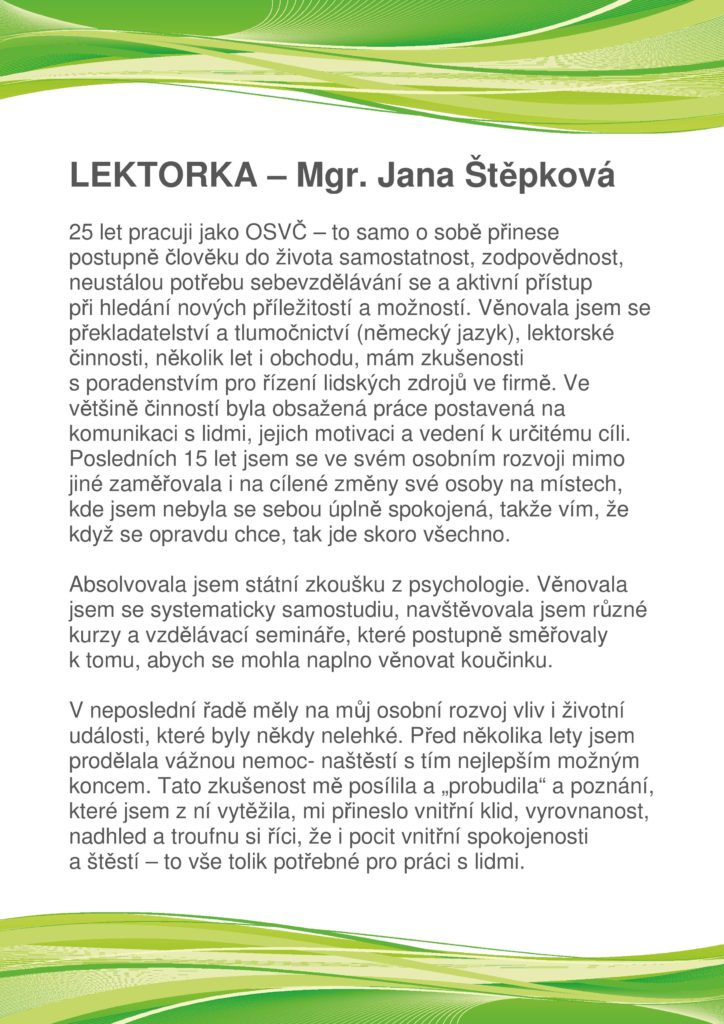 3. volné setkání s lektorkou Mgr. JANOU ŠTĚPKOVOU.