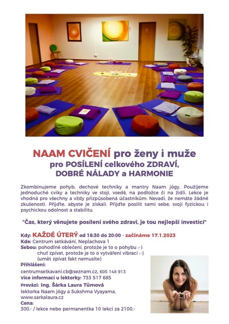 Každé úterý cvičíme v Centru setkávání NAAM JÓGU se Šárkou Laurou Tůmovou…