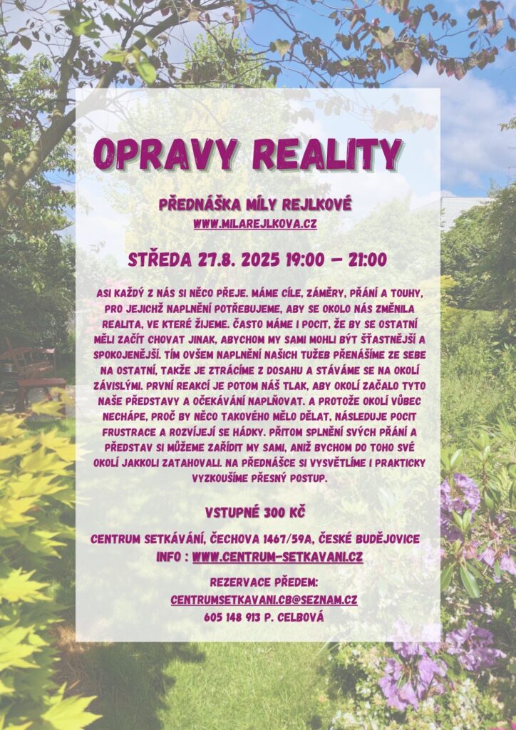 REZERVACE prosím, předem na tel. 605 148 913 nebo centrumsetkavani.cb@seznam.cz