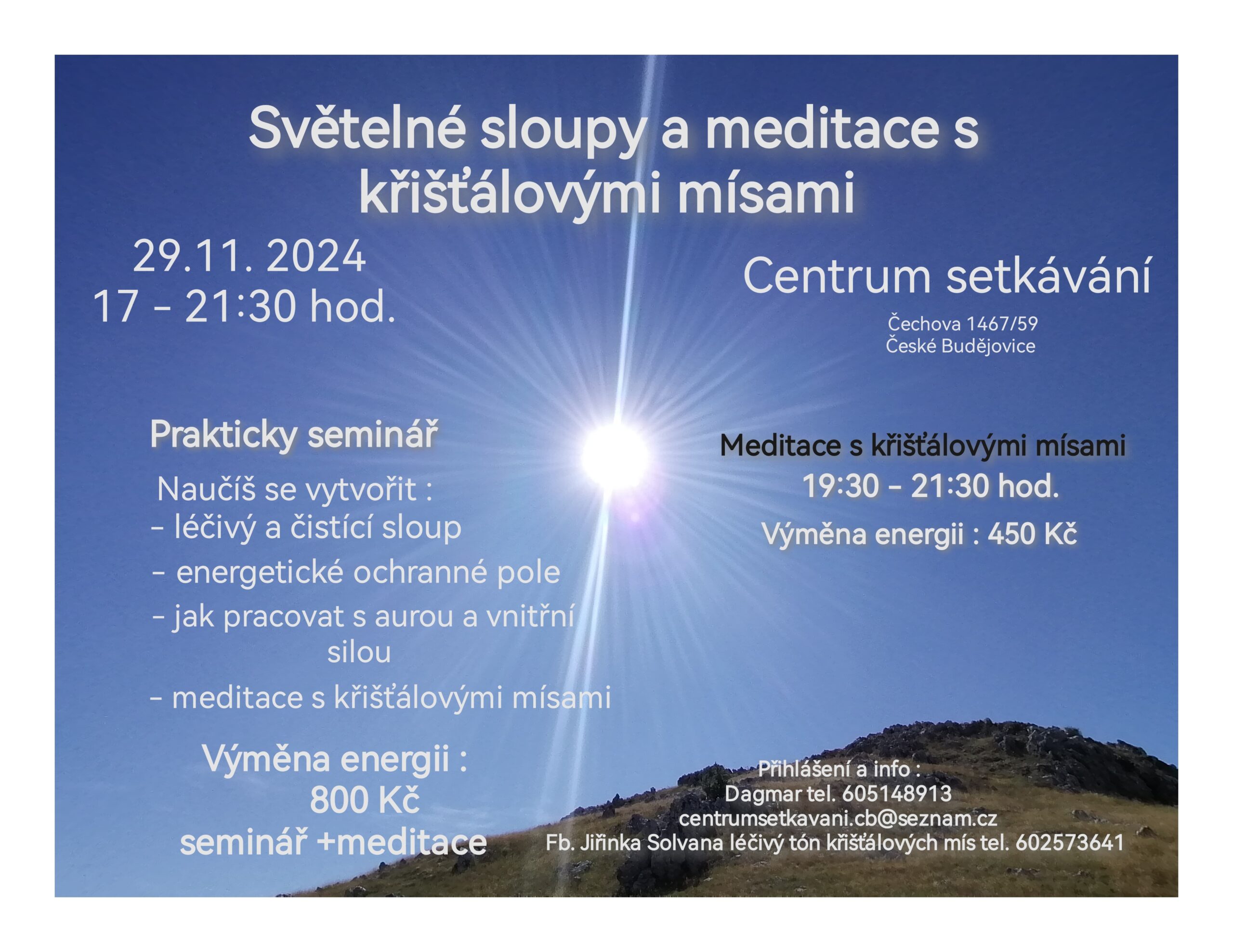 SVĚTELNÉ SLOUPY (seminář) a MEDITACE S KŘIŠŤÁLOVÝMI MÍSAMI