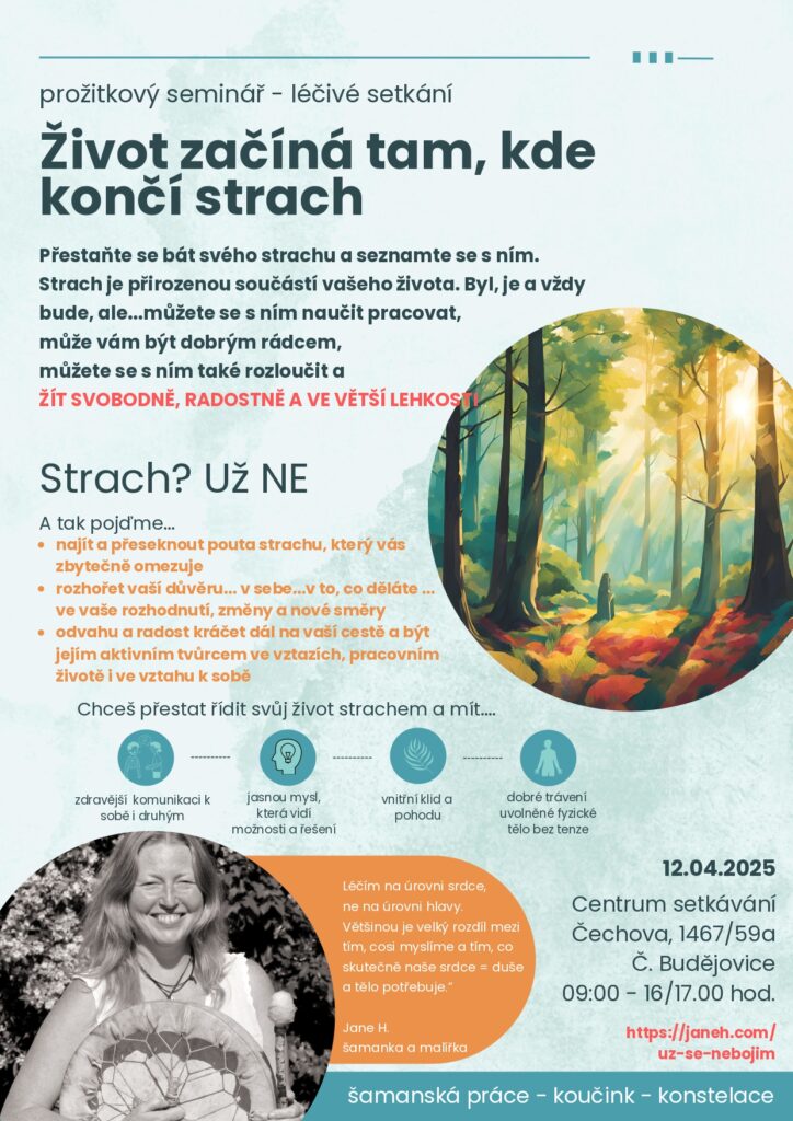 Strach je přirozenou součástí našeho života. Byl, je a vždy bude…můžete se s ním naučit pracovat, může vám být dobrým rádcem, můžete se s ním také rozloučit a žít svobodně, radostně a ve větší lehkosti.